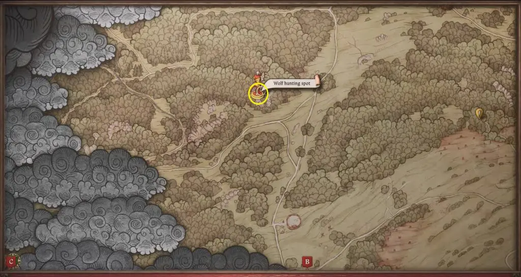 The final piece of Brunswick’s Armor is hidden in a Wolf’s Den northeast of the Trosky Castle. Search between two trees and look for a sack on the ground to retrieve the last piece.