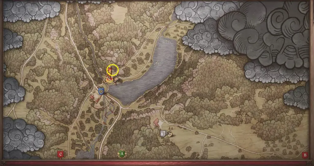 Go to the northern tip of a village on the west side of the map.