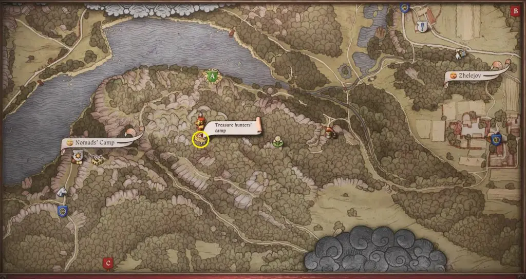Head to the Treasure Hunters’ Camp west of a town. Look for the cross in the area and search it to find another piece of Brunswick’s Armor.