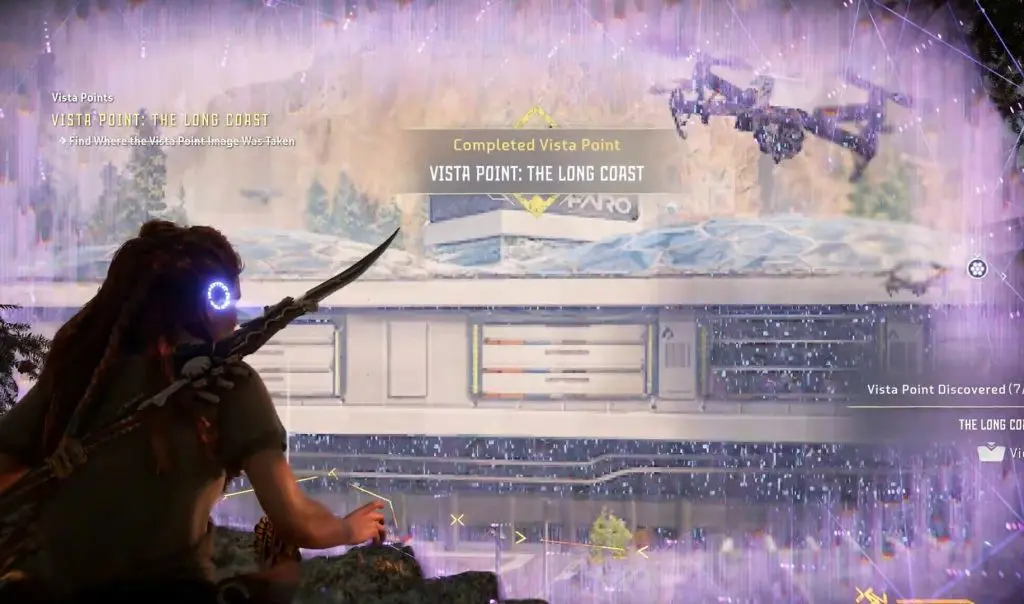 This guide shows the location of “The Long Coast” Vista point tower and how to solve “The Long Coast” Vista point puzzle in Horizon Forbidden West. Vista Points are a type of collectible in the game, for which first you will need to scan a tower to get an incomplete holographic image from the old world. Then you will have to stand at a specific spot and look in a specific direction from where the picture was taken to complete the holographic image, recreating the old world.