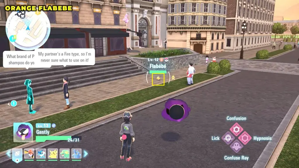 To find Orange Flabebe, travel to the bottom-left corner of the map. You’ll find the Orange Flabebe on the side of the Blue Street.