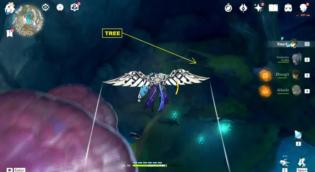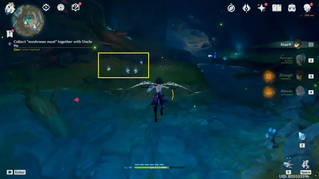 Your first objective will be to collect “Mushroom Meat”. Come out from the tree and collect the mushroom meat from the marked location as shown below. then defeat the Floating Fungi that will attack you.