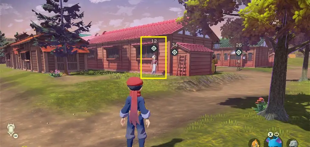 At the marked location, Investigate the tree as shown in the picture below. This will make the Chimchar at top of the tree, jump down. Catch the Chimchar and take it to Paira to complete the request.