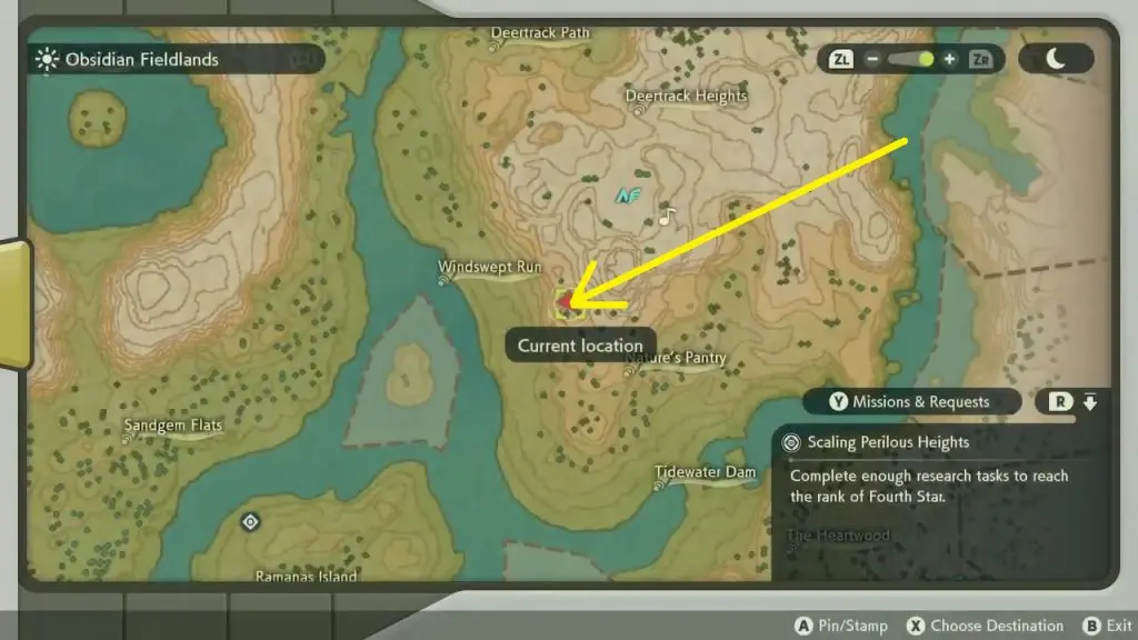 At night, go to Windswept Run at the location marked in the picture below. The location will be highlighted with an objective marker (Press ‘A’ while hovering over a request to track it)