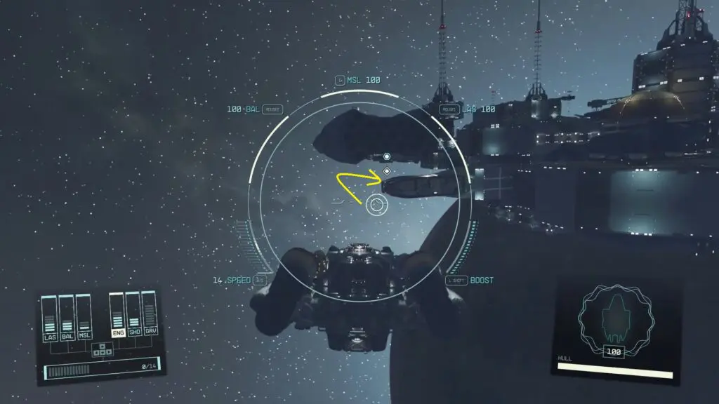 Slowly make your way over to the satellite after dropping the power on your engine. When you’re close to the satellite, hit “Target” (E for PC). This will bring up the “Activate” prompt to examine the satellite.