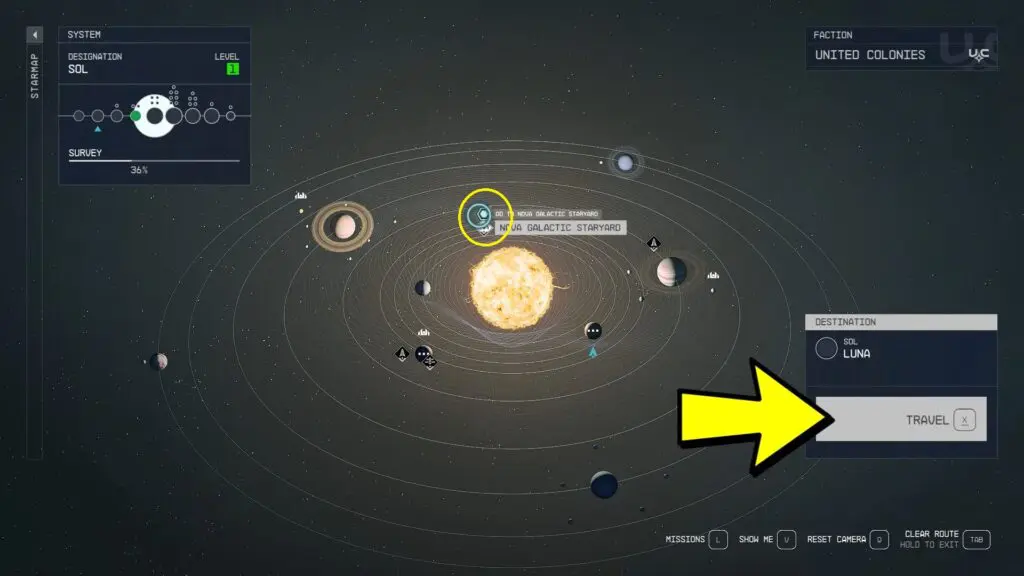 You’ll see the Nova Galactic Staryard in front of you once you’re in orbit. Set your course to reach Nova Galactic Staryard.