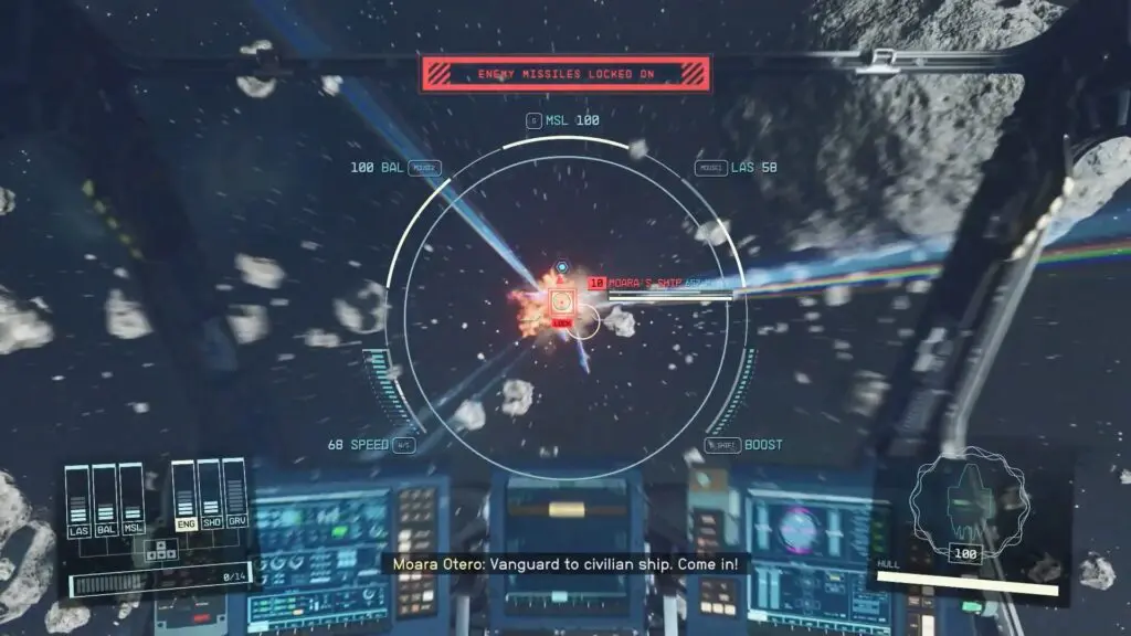 Go to your spacecraft and set a course for Neptune to travel to Neptune. Sarah will suggest that you avoid taking any hits from Moara’s ship as you approach it. She only wants you to damage the engine of her ship without destroying it, as Moara and a potential artifact are on board.