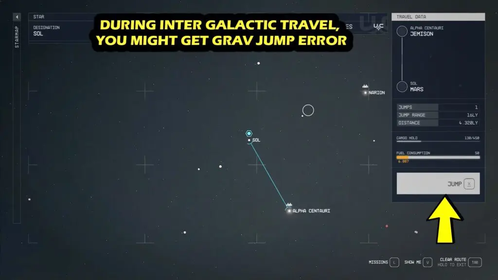 During intergalactic travel, you may encounter the Grav Jump error. Refer to this article: How to Power Up Grav Drive