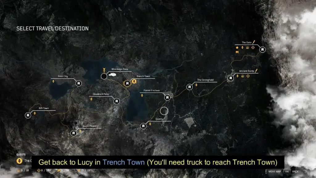 - Return to Lucy in Trench Town. You need to take the truck (talk to Jakub) to reach Trench Town.