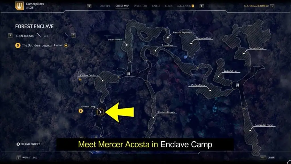 - Get back to Mercer Acosta in the Enclave Camp area (in Forest Enclave region)