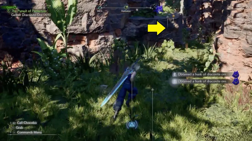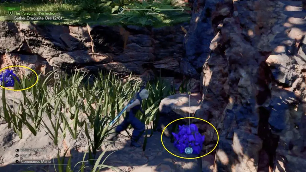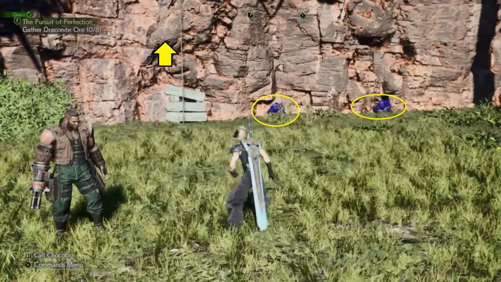 Players need to collect eight pieces of draconite deposits ore. These draconite deposits ore are of big blue color. Two draconite deposits of ore are next to the rope, below in ledge at ground level.