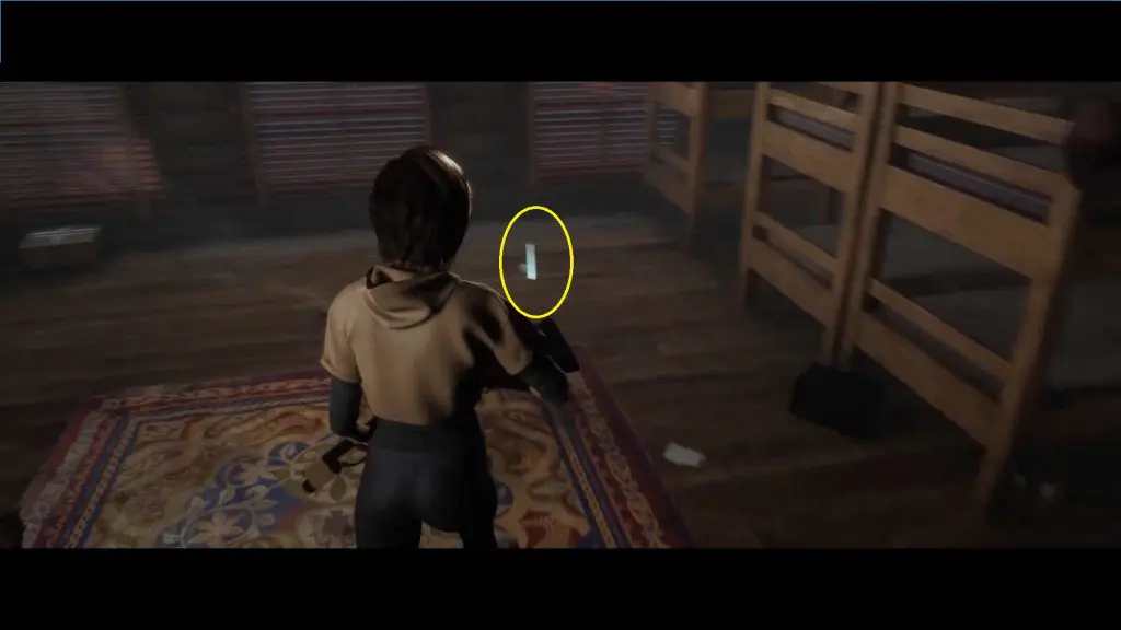 Go upstairs (2nd floor) and head to the left side. Enter the bedroom with some bunkbeds in it. You will find the camp letter on the floor.