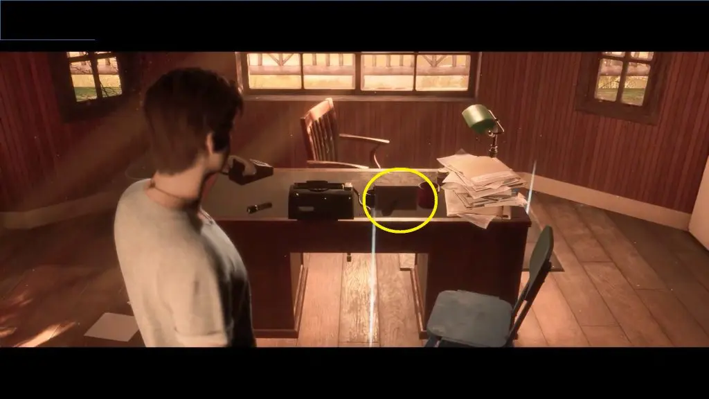 While playing as Dylan for the first time you will have to look around Chris’ office. interact with the family photo on the desk.