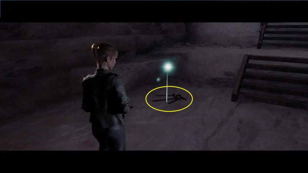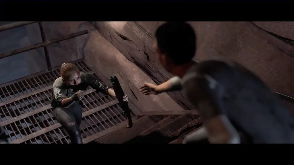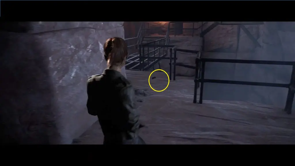 Use the next metal staircase to continue your journey. The metal steps will fracture as Ryan walks, and there will be a quick-time event in which Ryan should grab Laura. You can find the evidence on the ground afterward.