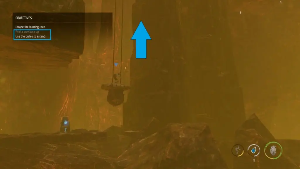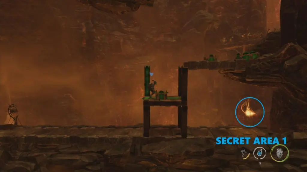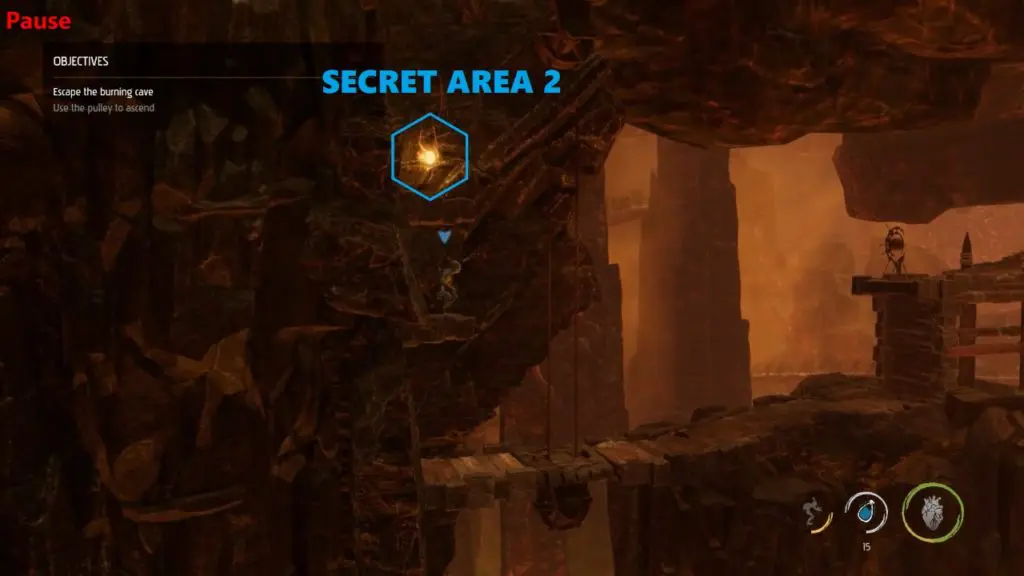 Secret Area 2: Climb down further and continue your journey. You will get the new objective ‘Find a way back up‘, Use the pulley to go up. Once the pulley reaches the top instead of going right, climb up and collect another ‘Royal Jelly’. This will unlock the second secret area.