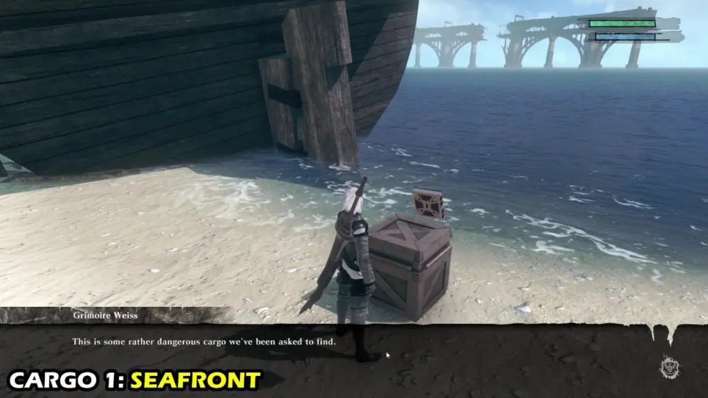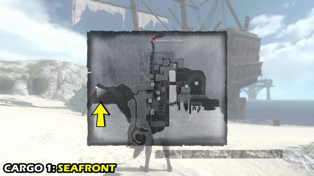 The First Cargo can be found on the western beach in Seafront near the crashed ship.