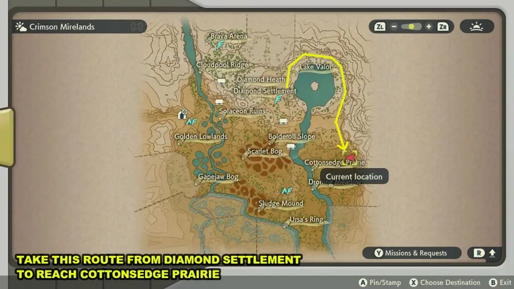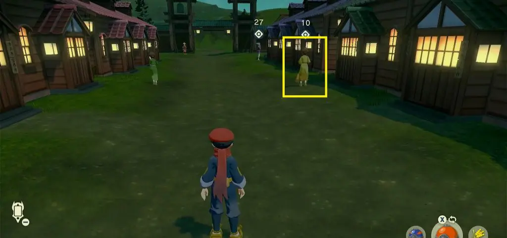 Go inside the house marked in the picture below. Talk to Anise inside the house. She will ask you to find and catch a Pokemon with three leaves in the Crimson Mirelands.