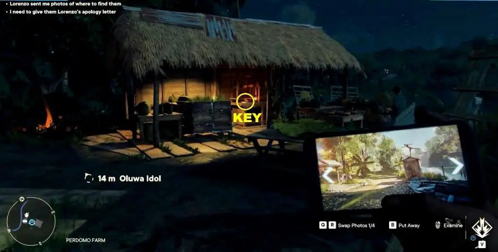 The outhouse from the photo is in Perdomo Farm as shown below. In front of the outhouse, you will find a key on top of a table in a shed. Collect the key and use it to open the room on the left side to find Lorenzo’s Juan.