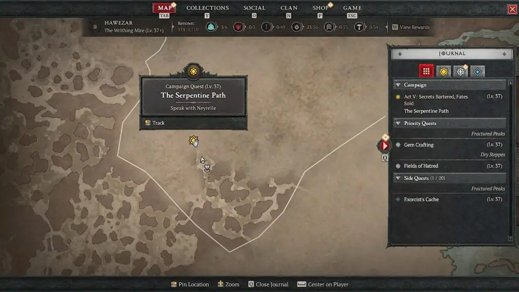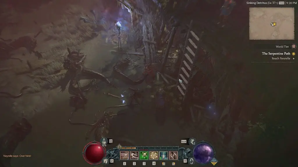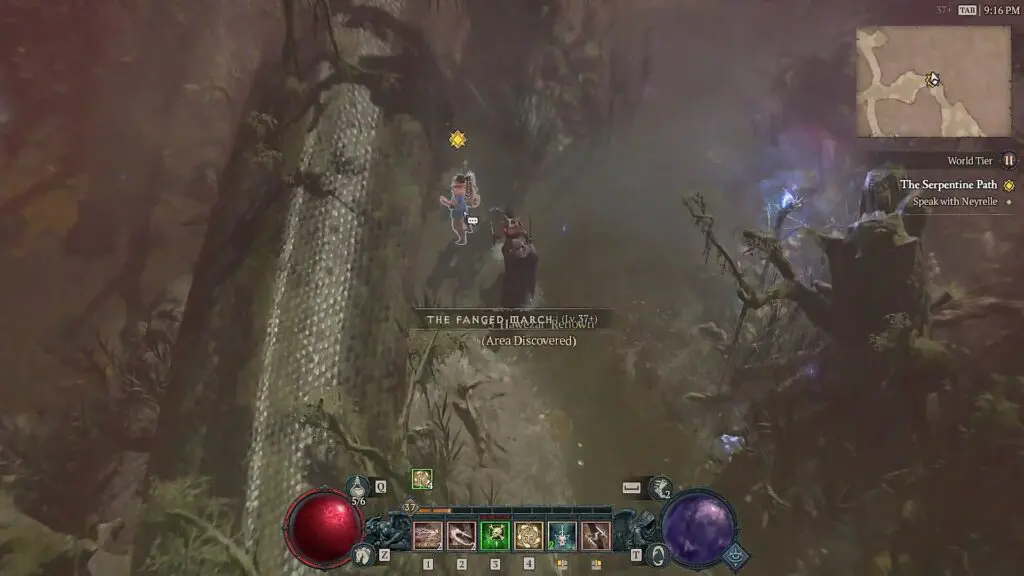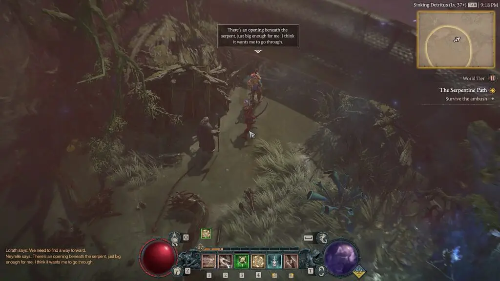 This guide shows the complete walkthrough of The Serpentine Path quest in Act V of the Diablo 4 game, released on 6th June 2023. For the first objective, go and talk to Neyrell in The Writhing Mire at the location shown in the pictures below.
