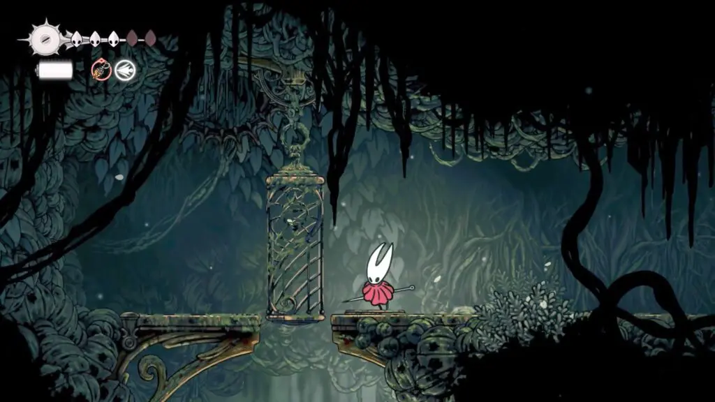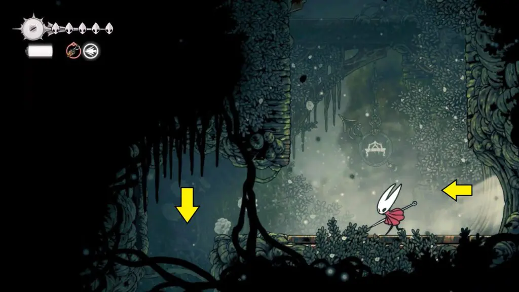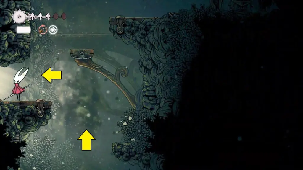 After reaching Shellwood, continue moving left. When the path ends, climb up the ledge to reach the top-left corner of the chamber and enter the new area.