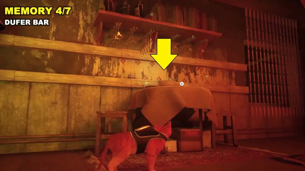 Enter the Dufer Bar and head upstairs. There is a small table near the stairs. Interact with it to unlock a memory.