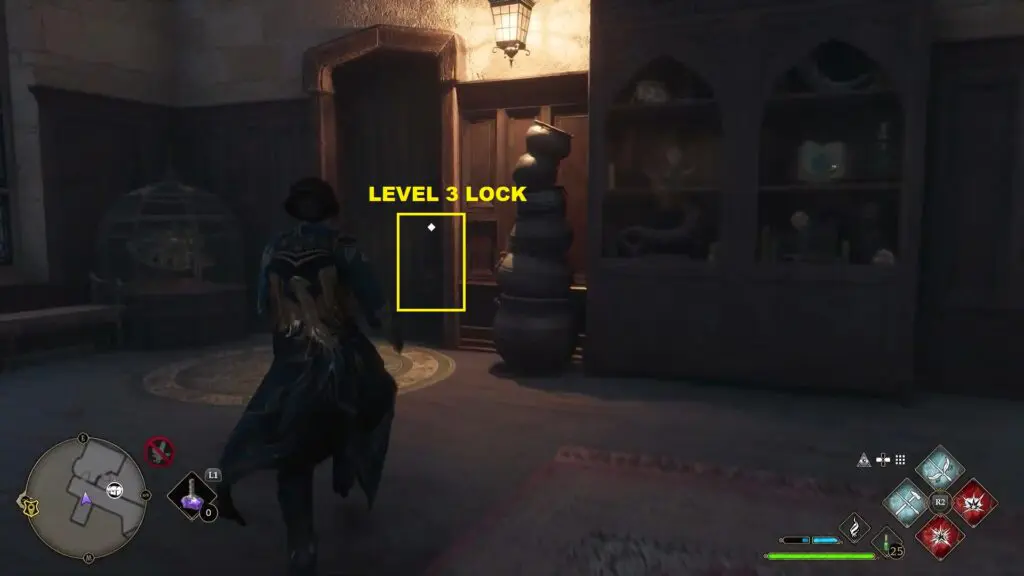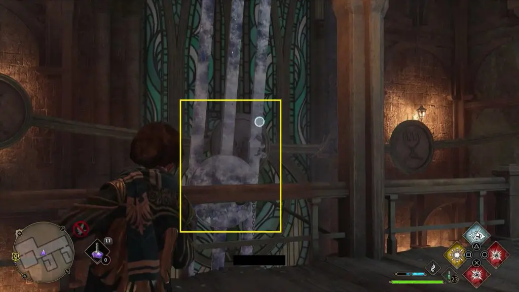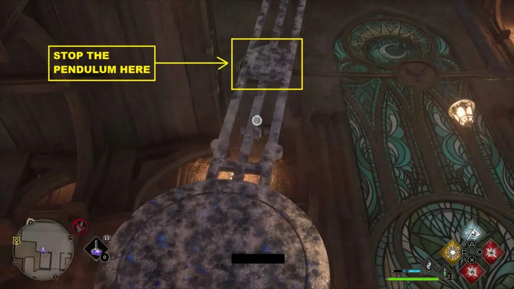 Climb up the stairs to reach the next floor. Now use Glacius or Arresto Momentum to stop the pendulum when it is in front of the circular plate as shown in the picture below. This will unlock the door on this floor. Go inside to get two Collection Chests.