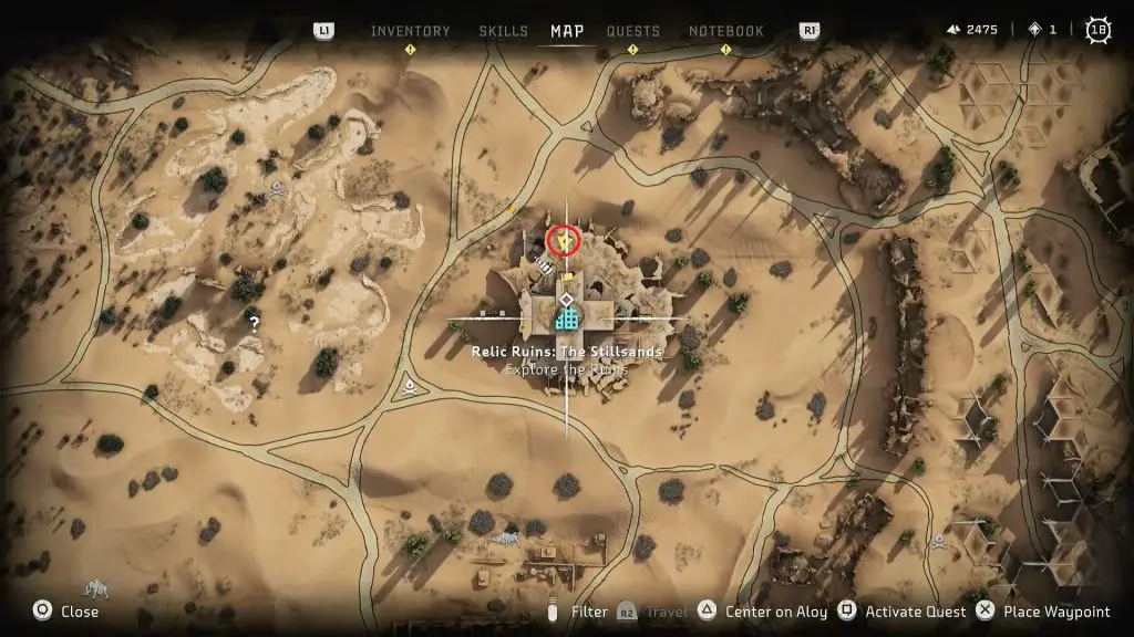 This guide shows how to complete “The Stillsands” Relic Ruin in Horizon Forbidden West. You will be able to complete this ruin only after you have completed story quest 5, Death’s Door.