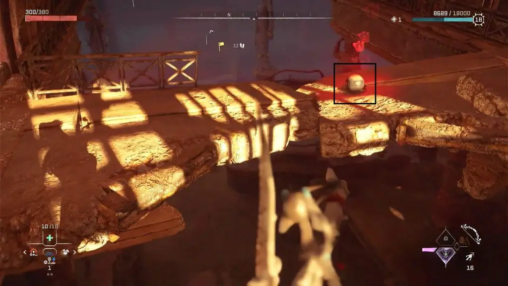 When the crate is on the southern edge, jump on the crate and climb up the ledges to reach the upper level as shown in the pictures below. On the upper level, you will find the ornament. Pick up the ornament to complete the relic ruin.