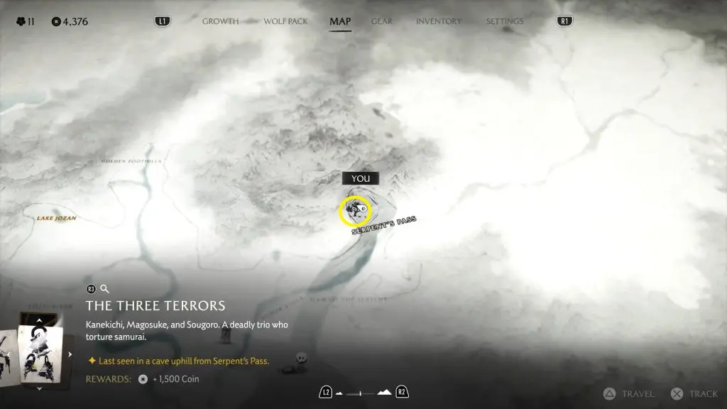 You can begin The Three Terrors bounty by visiting the Bounty Board located at the Yotei Shadow Inn/Old Inn in the Yotei Grasslands. In this bounty you need to eliminate 3 specific enemy.