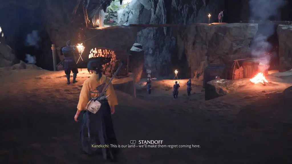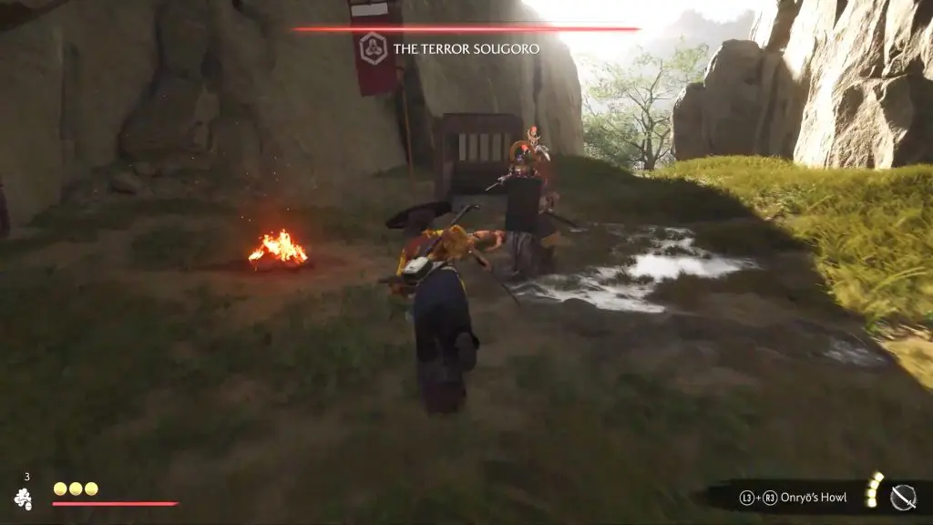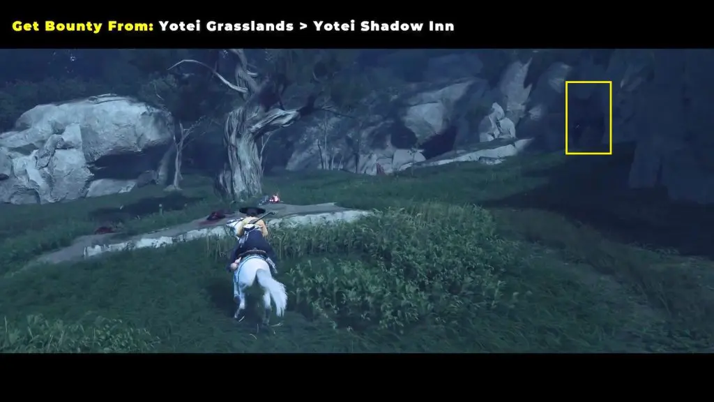 The Three Terrors Bounty in Ghost of Yotei is located in the northeast corner of the Yotei Grasslands, at a place known as The Twisted Tree. From the Serpent’s Pass, head north-east until you reach the Twisted Tree marker on your map. As you approach, look for a narrow path leading towards the northern edge of the area. You’ll find a small gap in the rocks that allows you to squeeze through into the cave system.