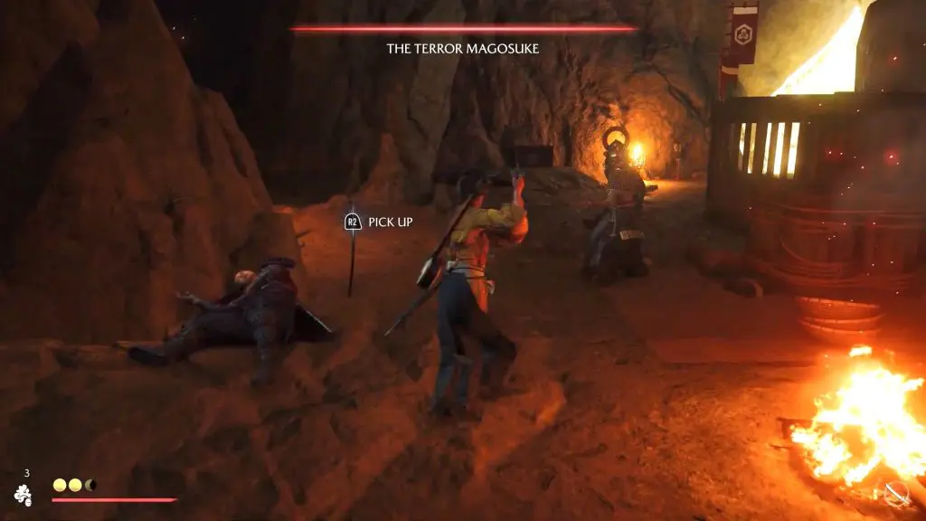 As soon as you enter the cave, you’ll encounter the first Terror patrolling near the entrance. Use stealth or ranged attacks to take him down.
