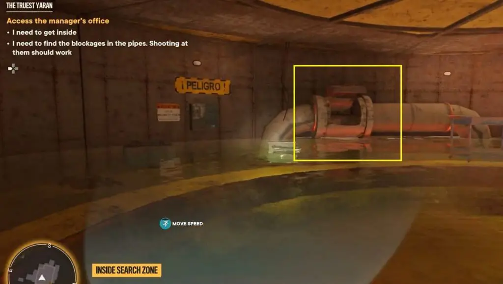 After draining out the water completely, backtrack to the control room with a switch. Pull the lever of the switch and it will open the shutter gate of the manager’s office connected to the hall. Enter inside the manager’s office to collect the treasure from the chest.