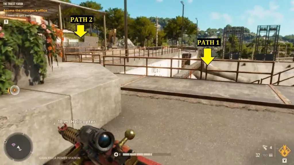 As the treasure hunt begins, your goal is to find out what the manager of this power station is hiding in her office. There are two ways to enter the power station building. You can use the below image to find both starting points.