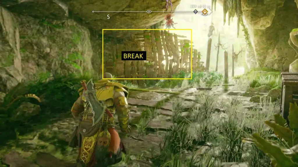 Continue ahead in the tunnel. Around the end of the tunnel, you will find a wooden barricade on the left side as shown in the picture below. Break the barricade and you will find the artifact behind it.
