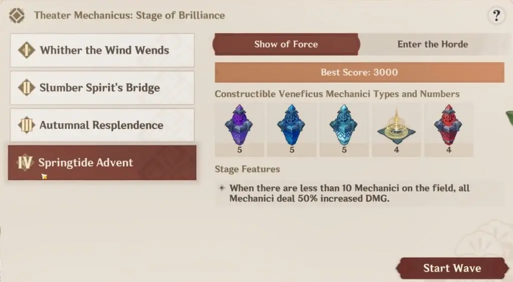 This guide shows how to complete the Theater Mechanicus: Springtide Advent Stage 1: Show of Force in the game Genshin Impact. Theater Mechanicus makes its return as part of the Hues of the Violet Garden event.
