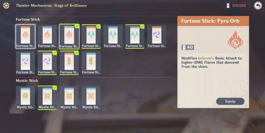 Refer to the below image for the Fortune Sticks and Mystic Sticks that are selected for this guide picked. Finally, set up your team, which is a standard Party menu where you can switch characters.