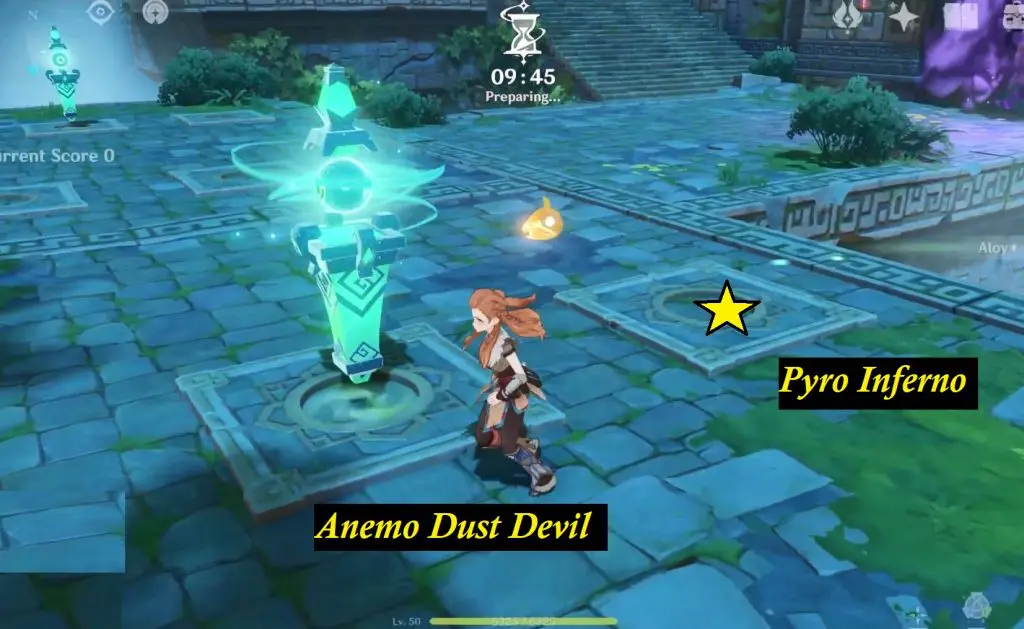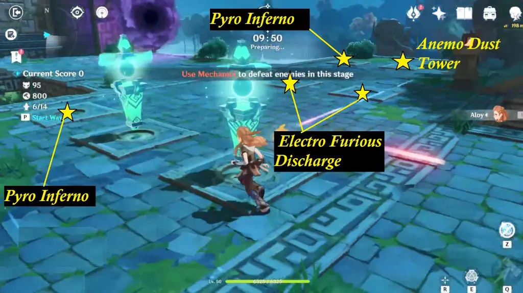 When you enter the stage you’ll find several Pyro, Anemo, and Banishment towers that are already up and running. You can dismantle, change or remove the towers. There will be a 10-minute timer to set up your towers and plan your strategy. The stage has bridges and several spots where you can place towers.
