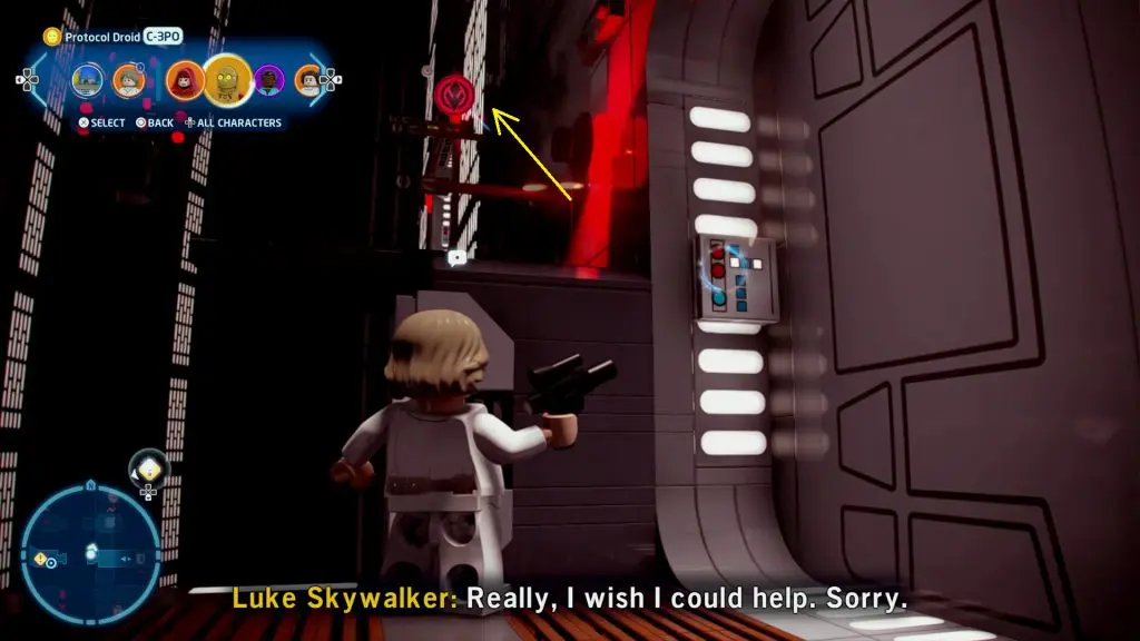 This one is in the room where you first get control of Luke and Leia. Switch to a Villain character and use it on the console as shown in the picture below. This will open the door to the room next to the console. Enter the room to get the Minikit.