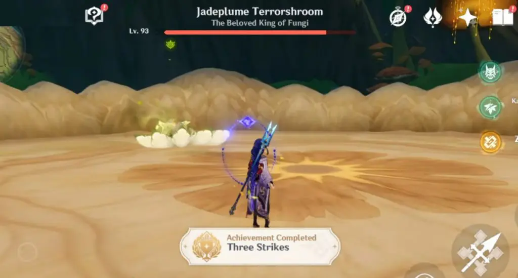 This guide shows how to complete the “Three Strikes” achievement in the game of Genshin Impact 3.0. You can earn this achievement while fighting the Jadeplume Terrorshroom Boss.