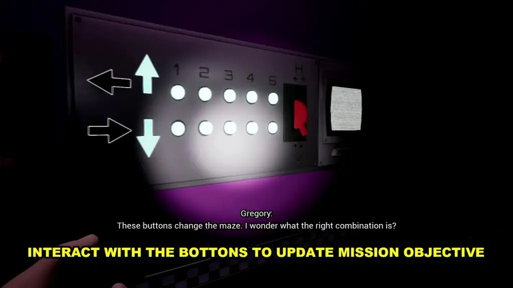 Inside this room, you will see some buttons on the wall as shown in the picture below. Interact with the buttons for the objective to update.