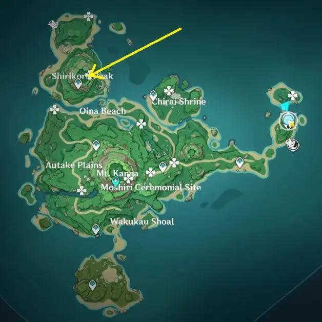 You will find a Thunderbird Statue at the north of Shirikoro Peak. It won’t be glowing, so you won’t be able to use the feather on it. You will have to solve two rotating cube puzzles nearby to make the statue glow. Once the statue is glowing, Use the ‘Peculiar Pinion‘ gadget in front of the statue to reveal 4 hidden rotating cubes. Hit them to make them face south. This will solve the puzzle and an exquisite chest will spawn.