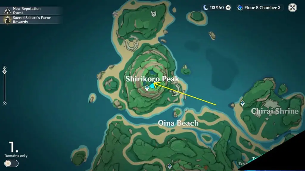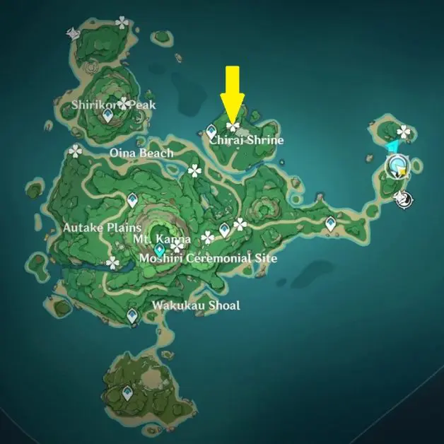 Go to the highlighted location in Chirai Shrine and use the ‘Peculiar Pinion‘ gadget in front of the statue. This will reveal 4 cubes down below on the west side. To solve the puzzle, you need to make the same number of leaves glow on all the cubes. Solving the puzzle spawns a Remarkable Chest.