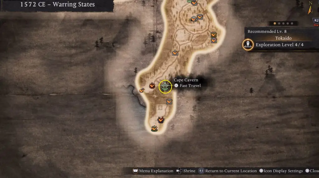 The Cape Cavern Shrine is located in the southern part of the map. Refer to the location shown below.