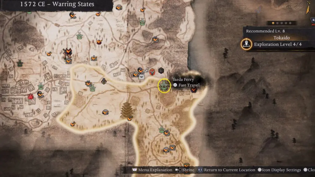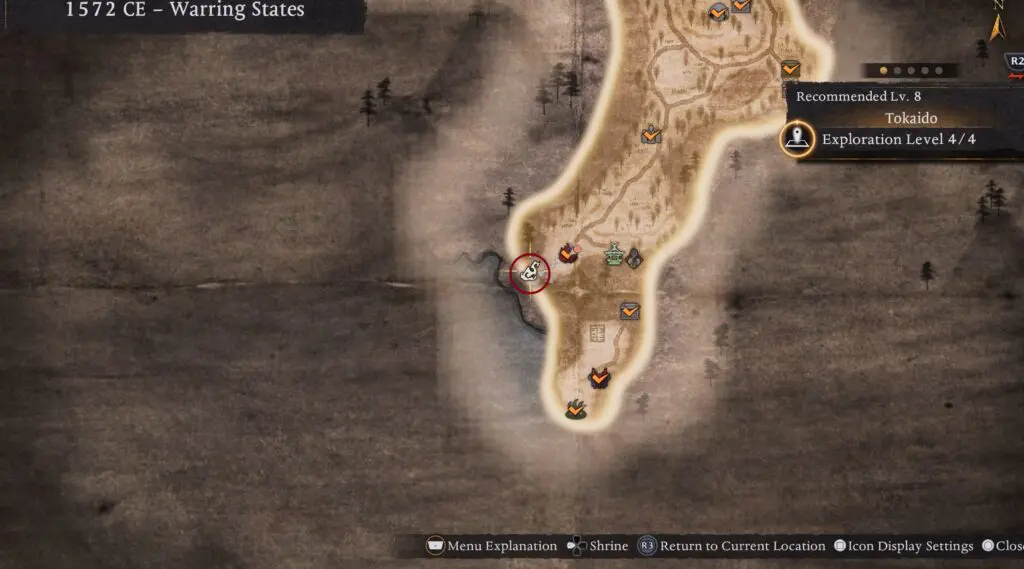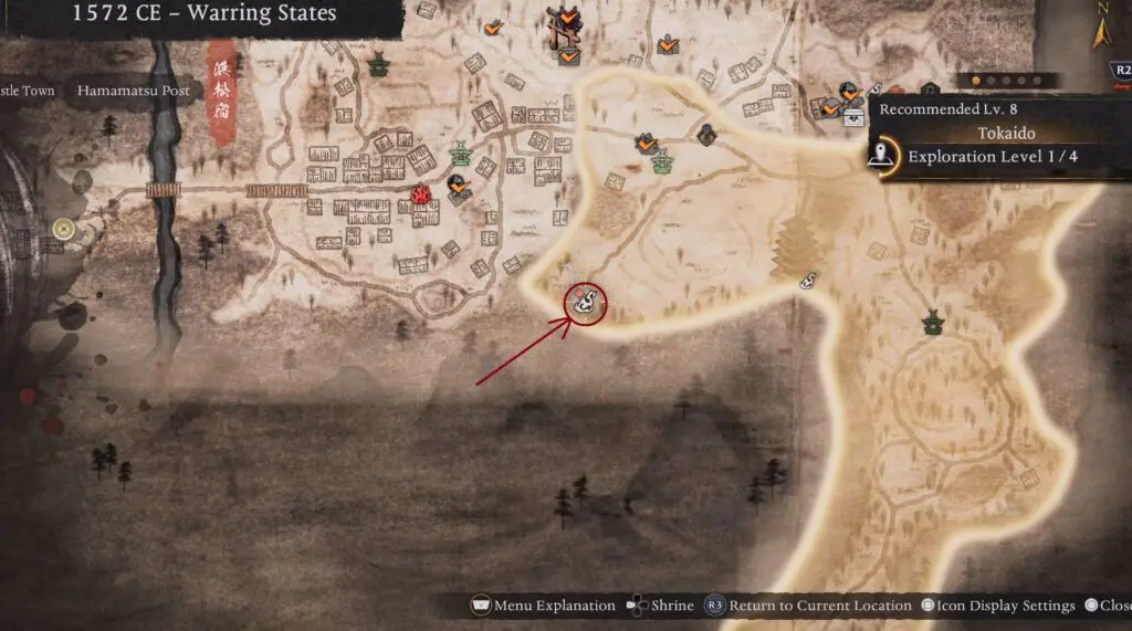 Shrine #2: Ikeda Ferry Shrine is located in the northeast part of the Tokaido area. Refer to the map location below.