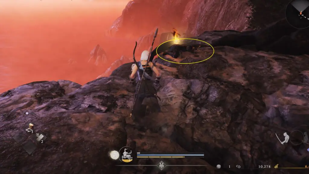 It is standing on a rock just behind the earlier collectible, the Ninja’s Text.