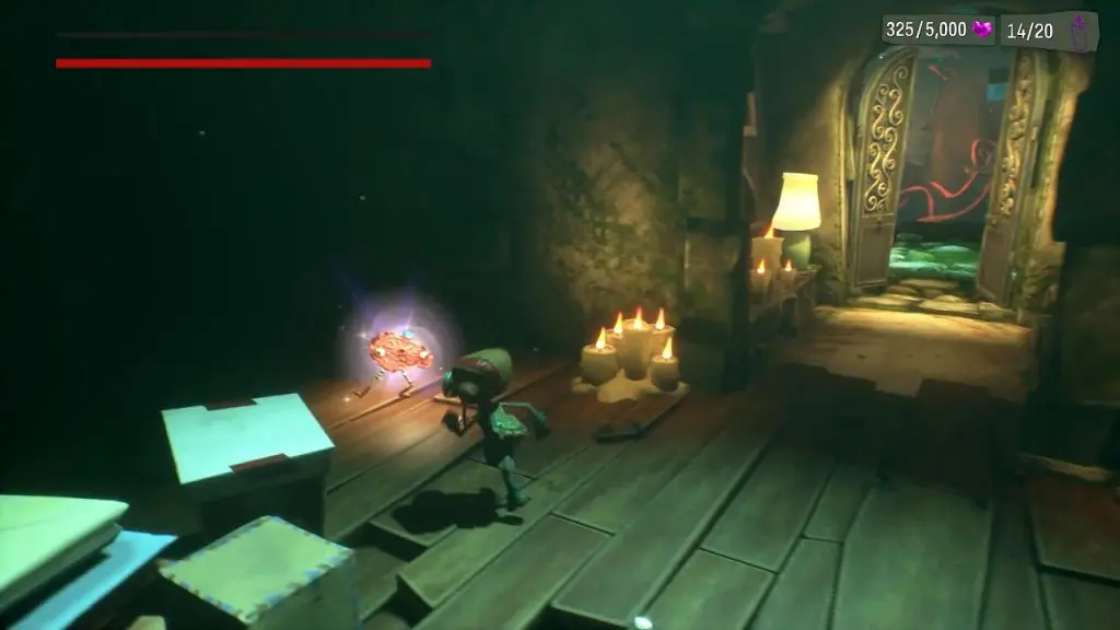 The Purse for this level can be found right at the bottom of the level. Once Raz gets up in a coffin-like area and two skeletons sleeping on the bed. The Purse is placed behind the Astralathe as shown in the below image.