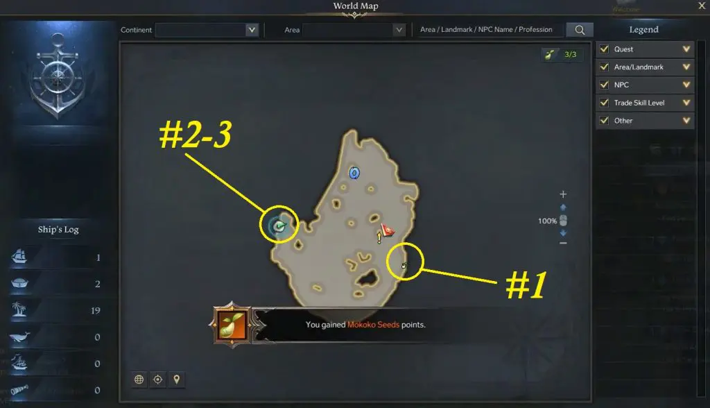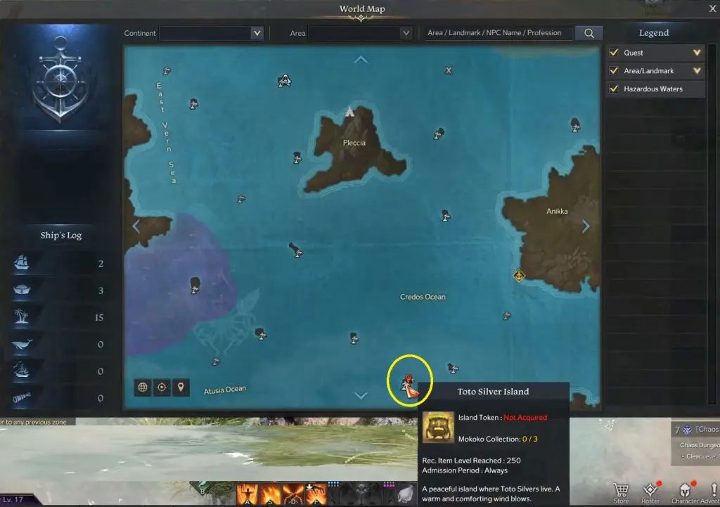 This walkthrough will guide you through everything you need to know on how to collect Mokoko Seeds at Toto Silver Island in the game Lost Ark. Mokoko Seeds are a special type of collectible scattered across the continents. You can exchange Mokoko Seeds for unique rewards at specific intervals. Toto Silver Island is located below Pleccia island as shown below. There are 3 Mokoko Seeds to find at Saland Hill.