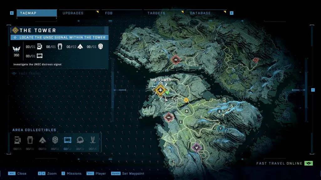 This guide shows the location of all the collectibles (2 Spartan Cores, 1 Skull, 1 UNSC Audio Log, 1 Banished Audio Log, 1 Mjolnir Locker) in The Tower in Halo Infinite campaign.