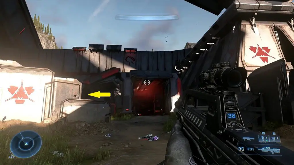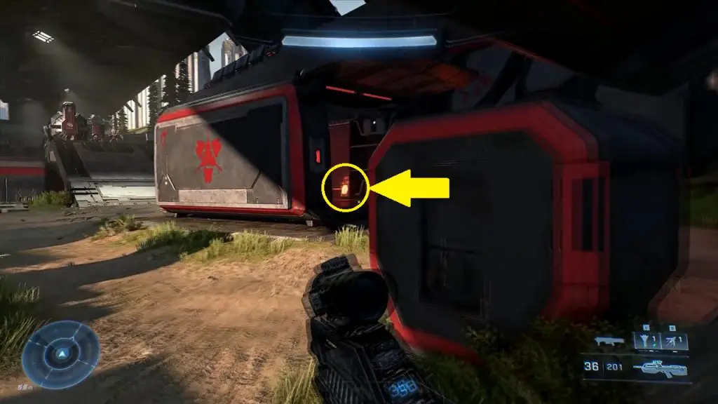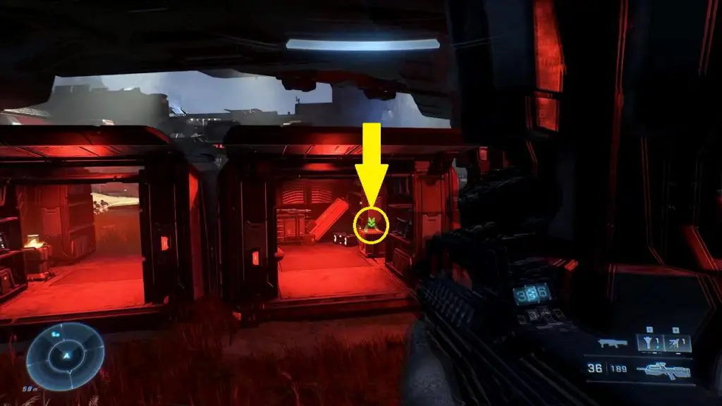 For the ‘Find a way to end the Lockdown’ objective and to activate the lift, you will need to go inside a building marked by a weapon on the map. The spartan core is inside a banished crate on the left of the building.