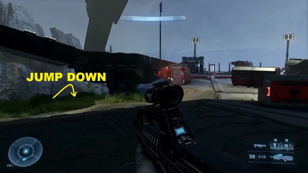 Mjolnir Armor Locker is under the platform overhanging from the cliff. Jump down at the location shown below to reach the locker.